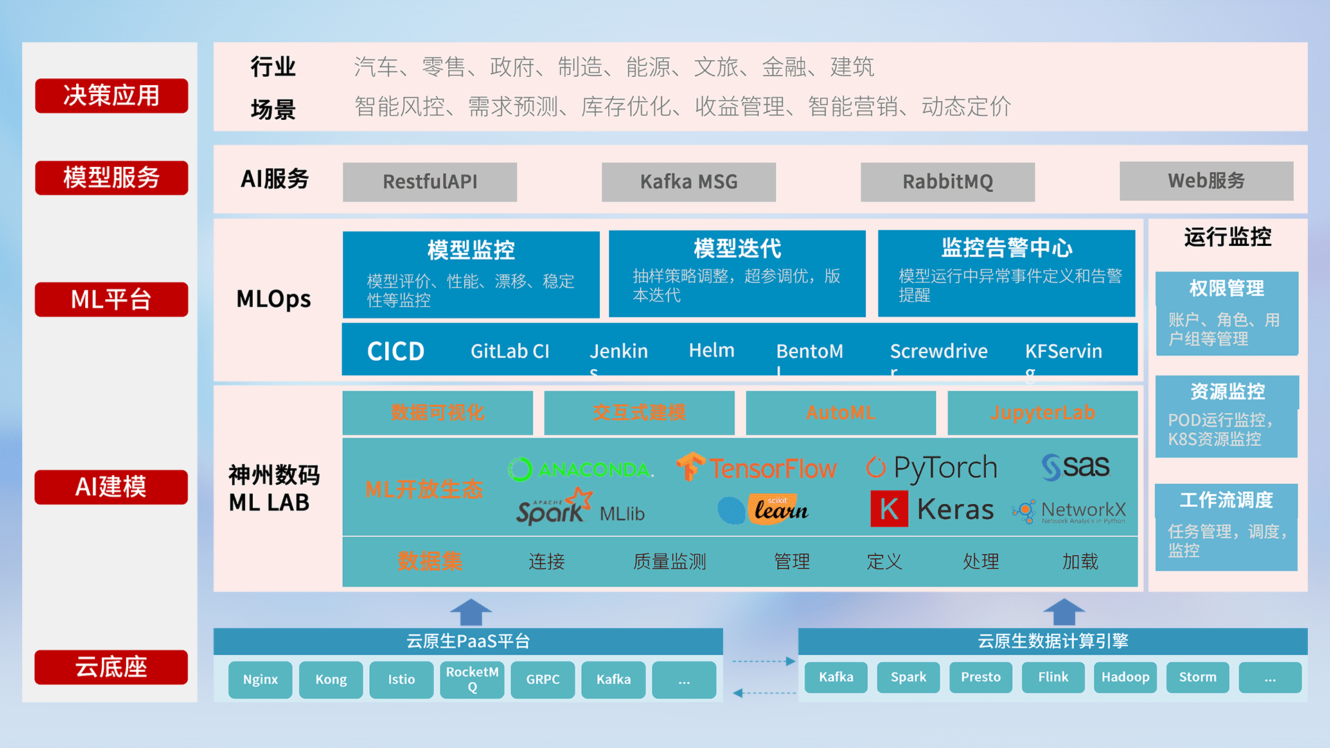 数据+模型双引擎驱动,,,面向智能服务场景,,,,快速灵活利用AI技术,,支持业务决策,,助力企业智能化转型破局。。